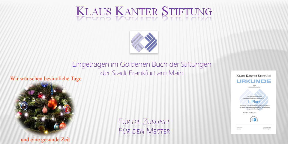 in Vorbereitung Dies sind die Sponsoren der Preisgelder der Klaus-Kanter-Förderpreise Unterstützen Sie die deutsche Zahntechnik - unterstützen Sie die Klaus Kanter Stiftung |